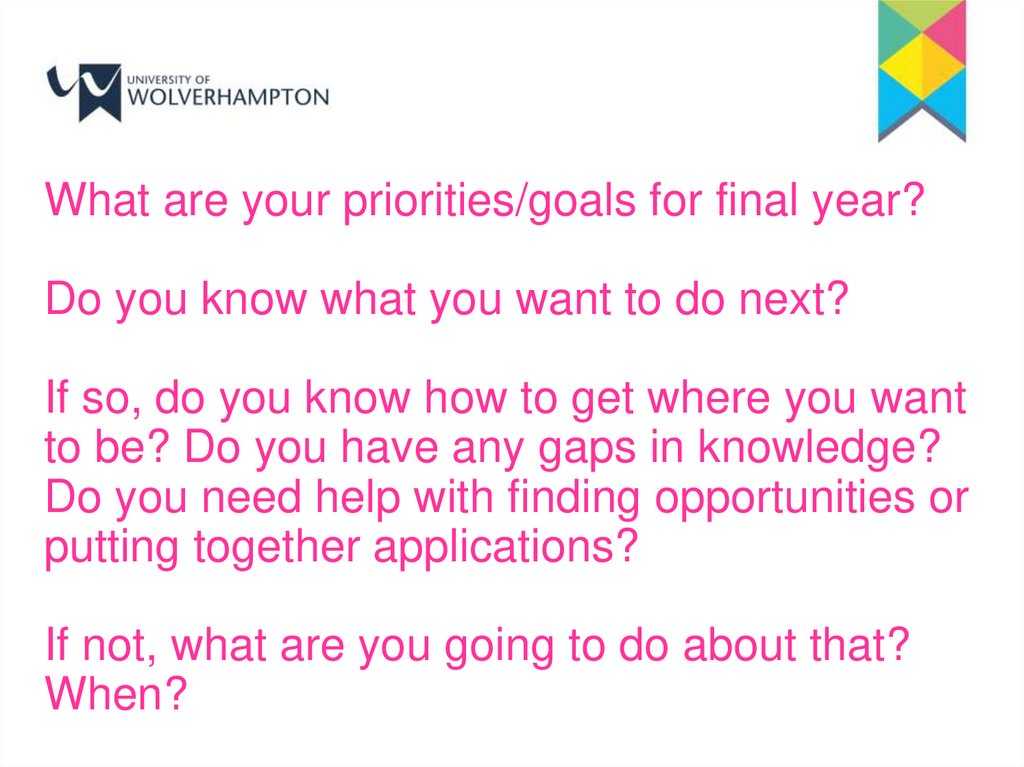What are your priorities/goals for final year?Do you know what you want to do next?
