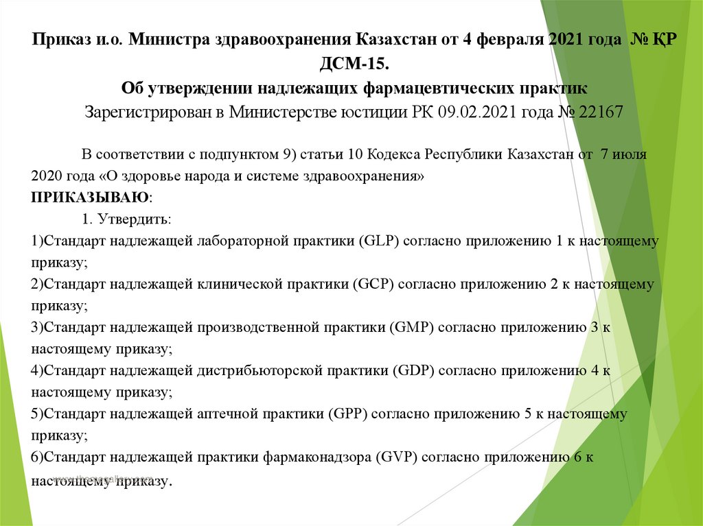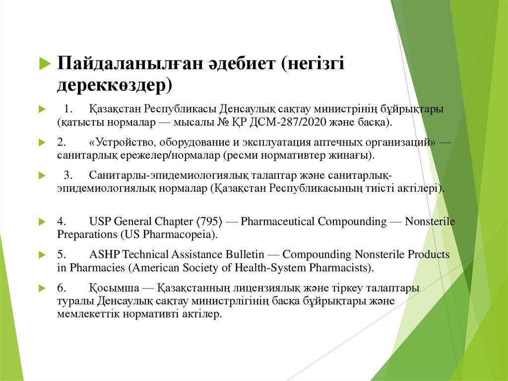 ⟨795⟩, ASHP т.б.) негізделуі тиіс. Қазақстанда бұл талаптар Денсаулық сақтау