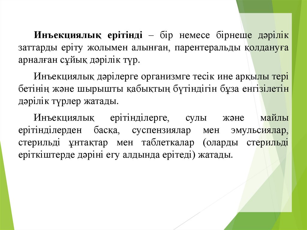инъекциялық дәрілік түрлер,оларды қолдану тәсілі