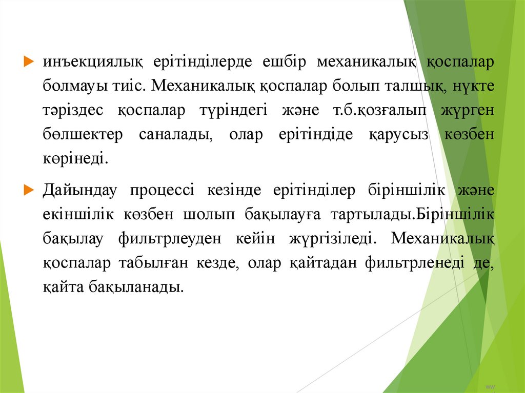 инъекциялықерітінділерде ешбір механикалық қоспалар