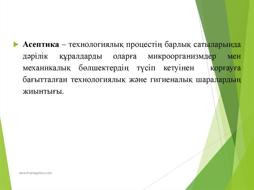Асептика – технологиялық процестің барлық сатыларындадәрілік құралдарды оларға микроорганизмдер мен