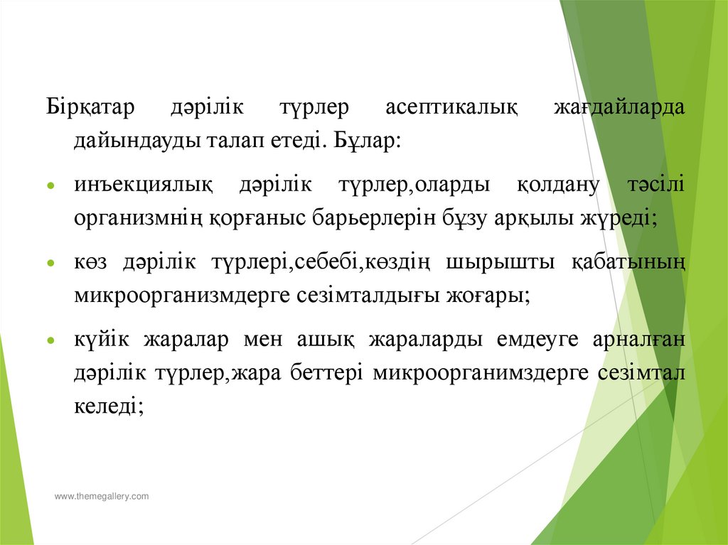 Бірқатар дәрілік түрлер асептикалықдайындауды талап етеді. Бұлар: