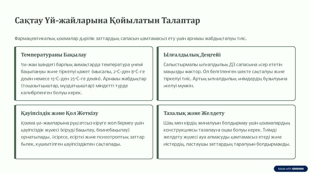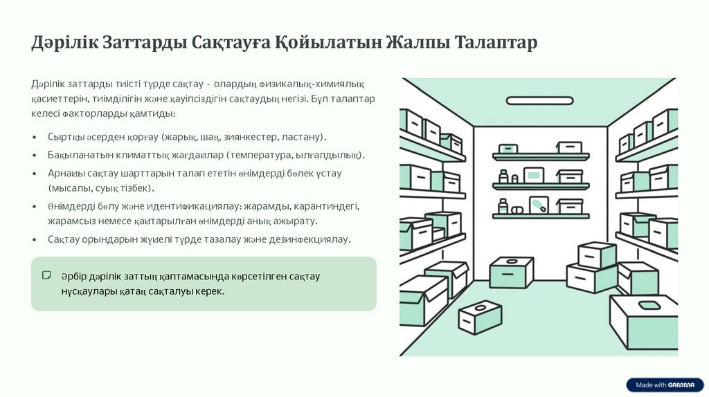 Дәрілік Заттарды Сақтауға Қойылатын Жалпы ТалаптарДәрілік заттарды тиісті түрде сақтау – олардың физикалық-химиялық