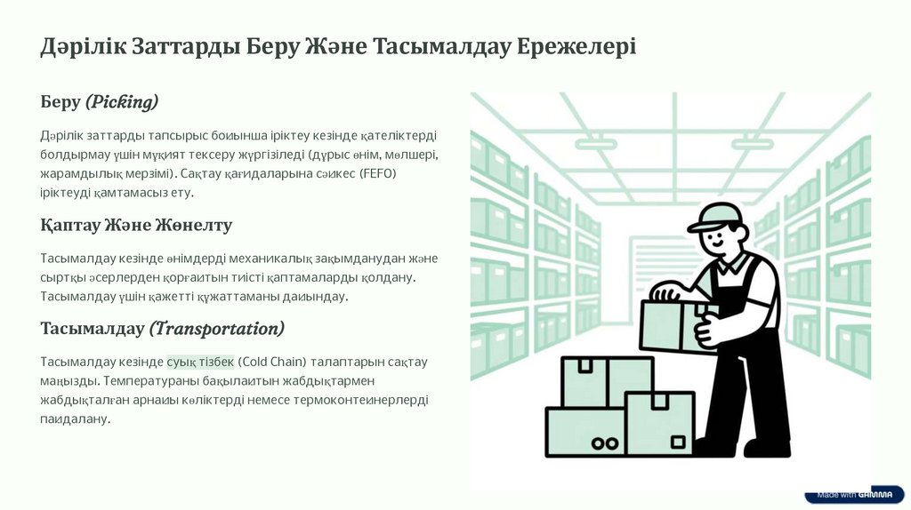 Дәрілік Заттарды Беру Және Тасымалдау ЕрежелеріБеру (Picking)