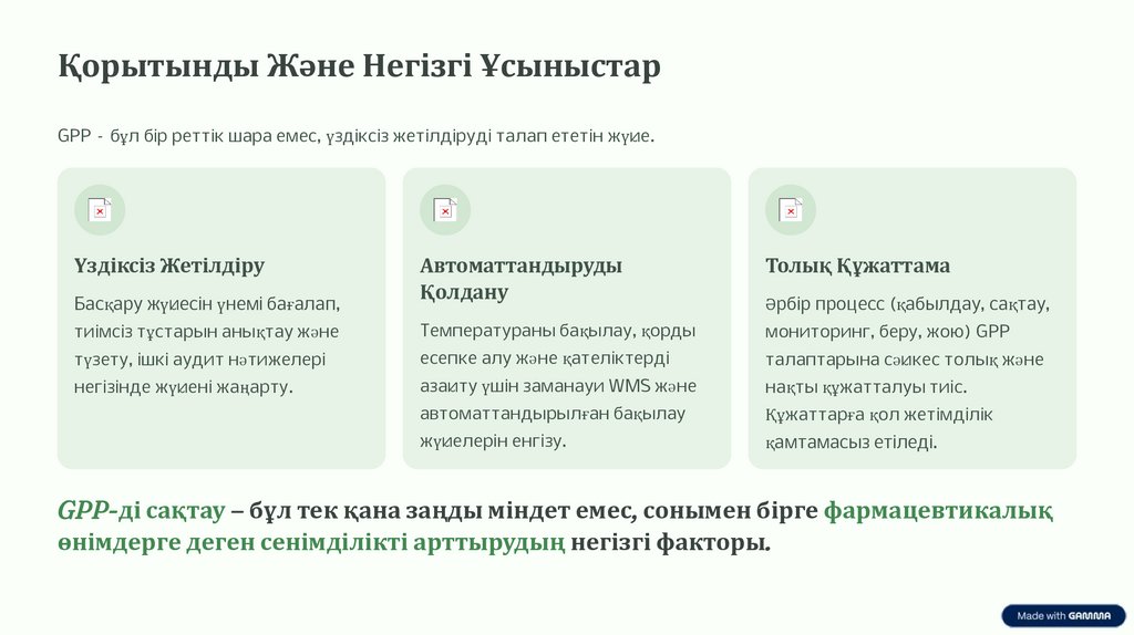 Қорытынды Және Негізгі ҰсыныстарGPP – бұл бір реттік шара емес, үздіксіз жетілдіруді талап ететін жүйе.