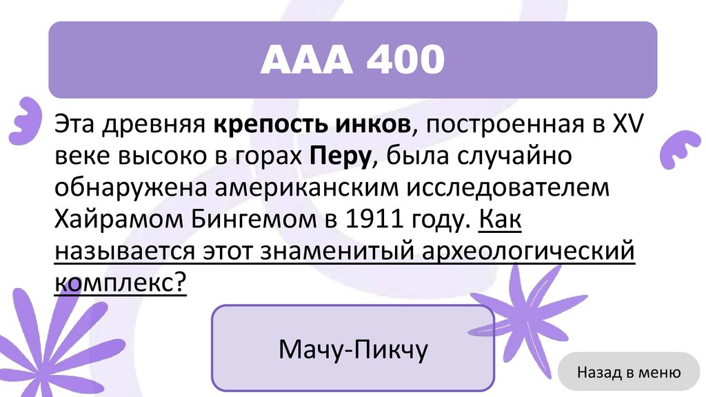 ААА 400Эта древняя крепость инков, построенная в XV