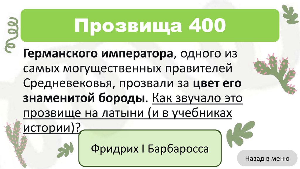 Викторина«Историческое и