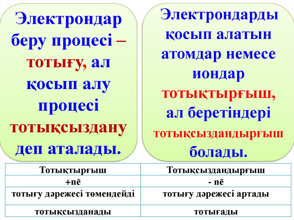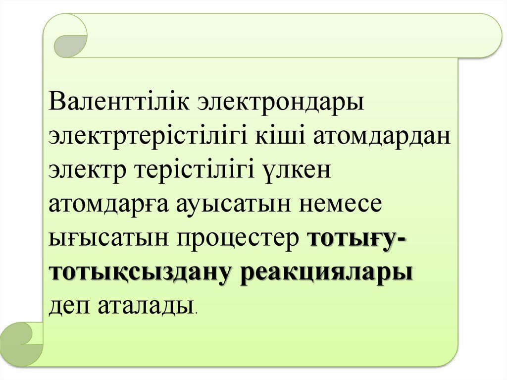 Химиялық реакциялар элементтератомдарының тотығу дәрежесінің өзгеруі
