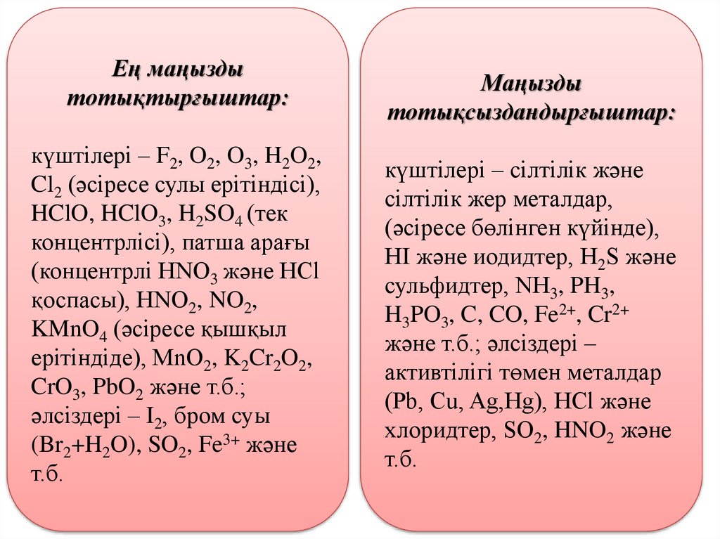 2) тотықтырғыш пен тотықсыздандырғыш бір