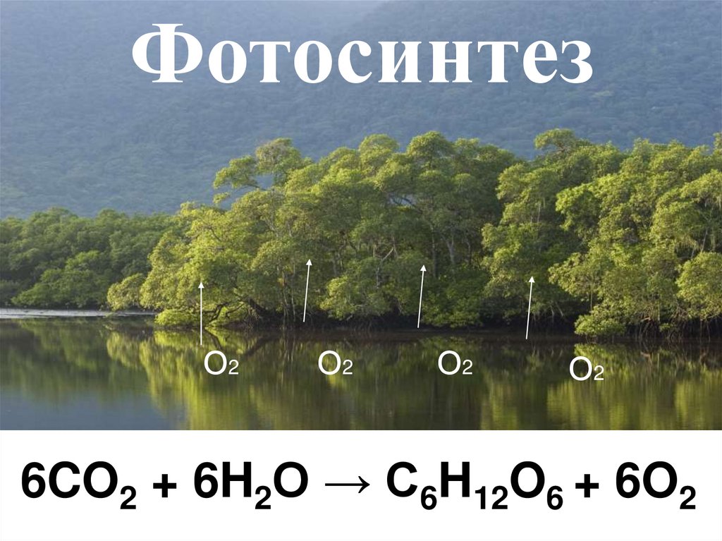 6CO2 + 6H2O → C6H12O6 + 6O2