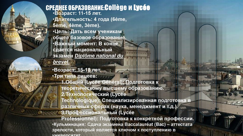 СРЕДНЕЕ ОБРАЗОВАНИЕ:Collège и Lycée•Возраст: 11-15 лет.