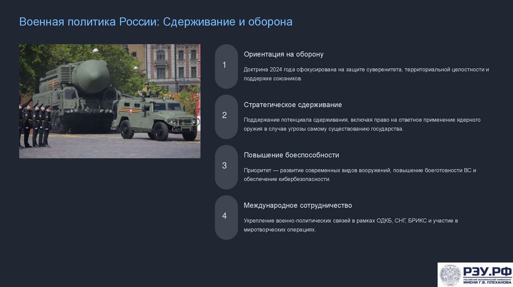 Военная политика России: Сдерживание и оборонаОриентация на оборону