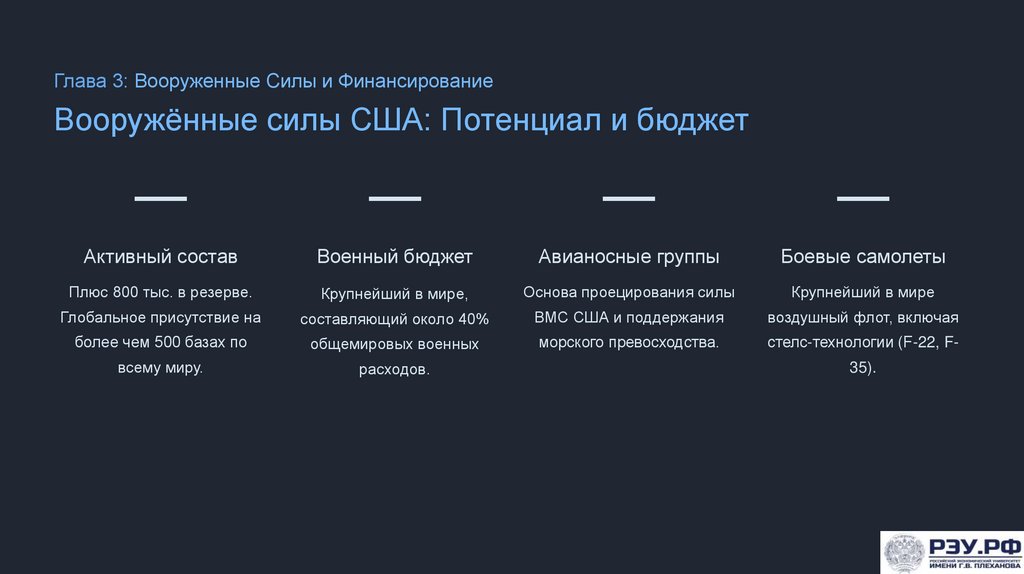 Глава 3: Вооруженные Силы и ФинансированиеВооружённые силы США: Потенциал и бюджет