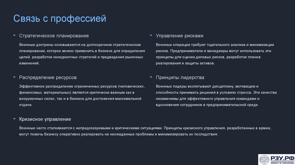 вооруженных силах, так и в бизнесе для достижения максимальной