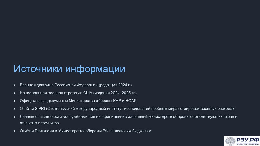 Источники информацииВоенная доктрина Российской Федерации (редакция 2024 г.).