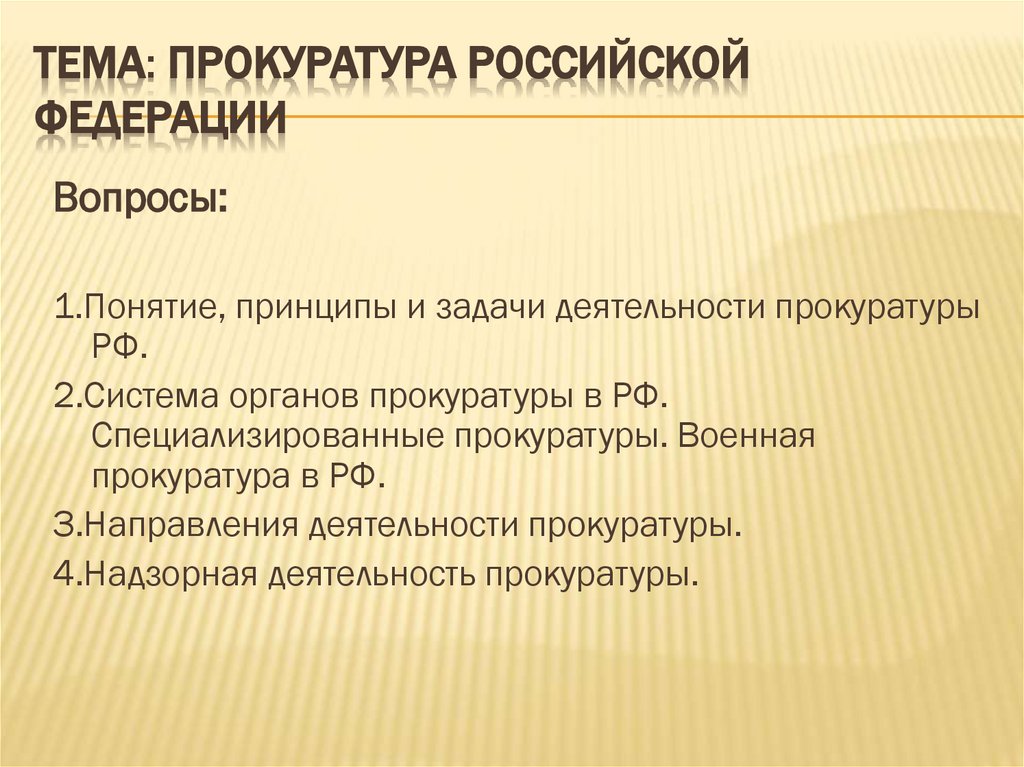 ТЕМА: ПРОКУРАТУРА РОССИЙСКОЙФЕДЕРАЦИИ