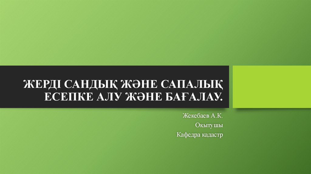 1. ЖЕРДІ САНДЫҚ ЖӘНЕ САПАЛЫҚ ЕСЕПКЕ АЛУ ЖӘНЕ БАҒАЛАУ.