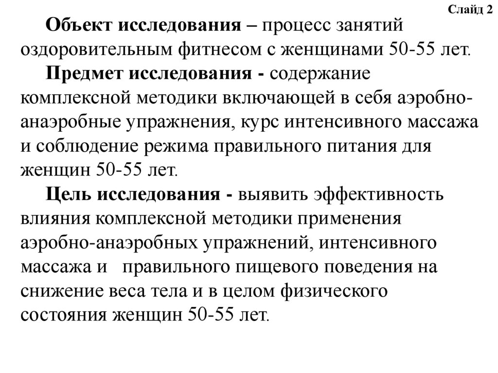 Слайд 2Объект исследования – процесс занятий