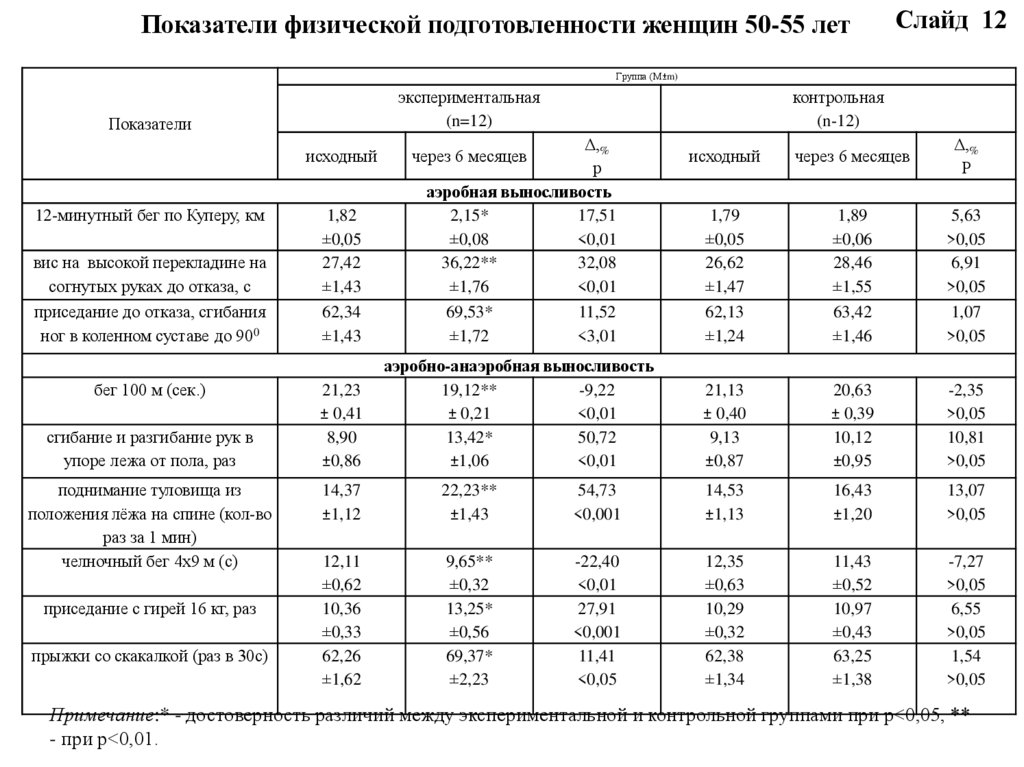 физического состояния женщин 50-55 лет.