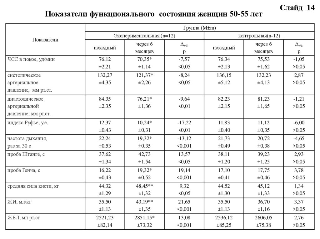 сердечно-сосудистой и дыхательной систем женщин 50-55 лет за шесть