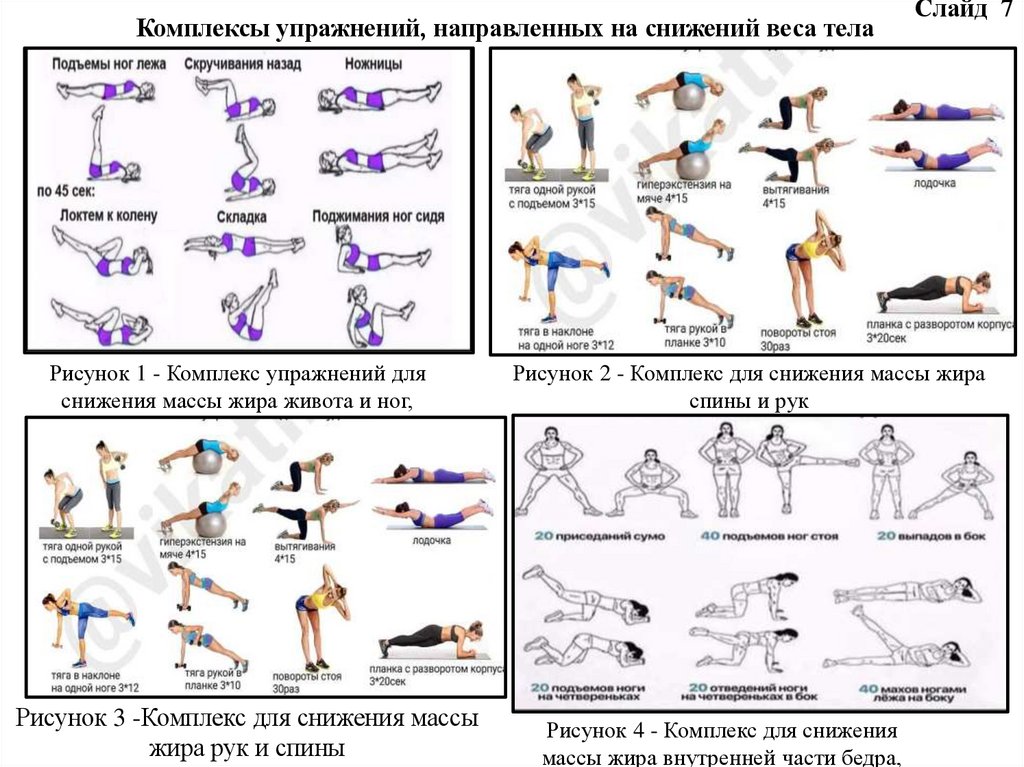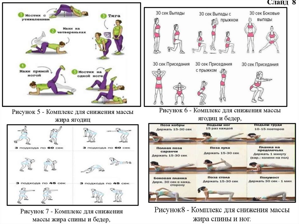 рисунок 1 - комплекс упражнений для снижения массы жира живота и ног,