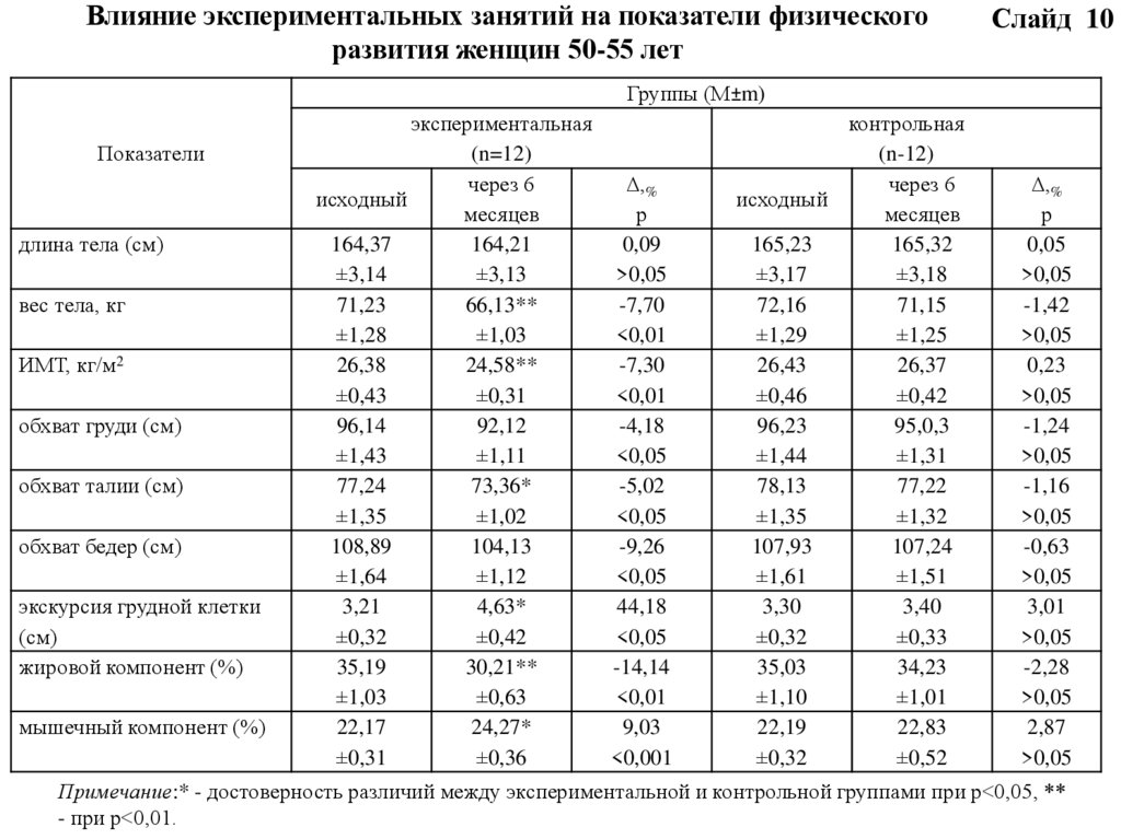 улучшения физического состояния женщин 50-55 лет.