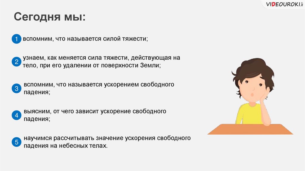 Сегодня мы:1 вспомним, что называется силой тяжести;