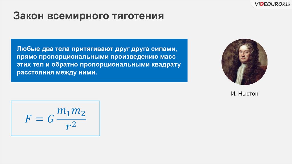 Закон всемирного тяготенияЛюбые два тела притягивают друг друга силами,