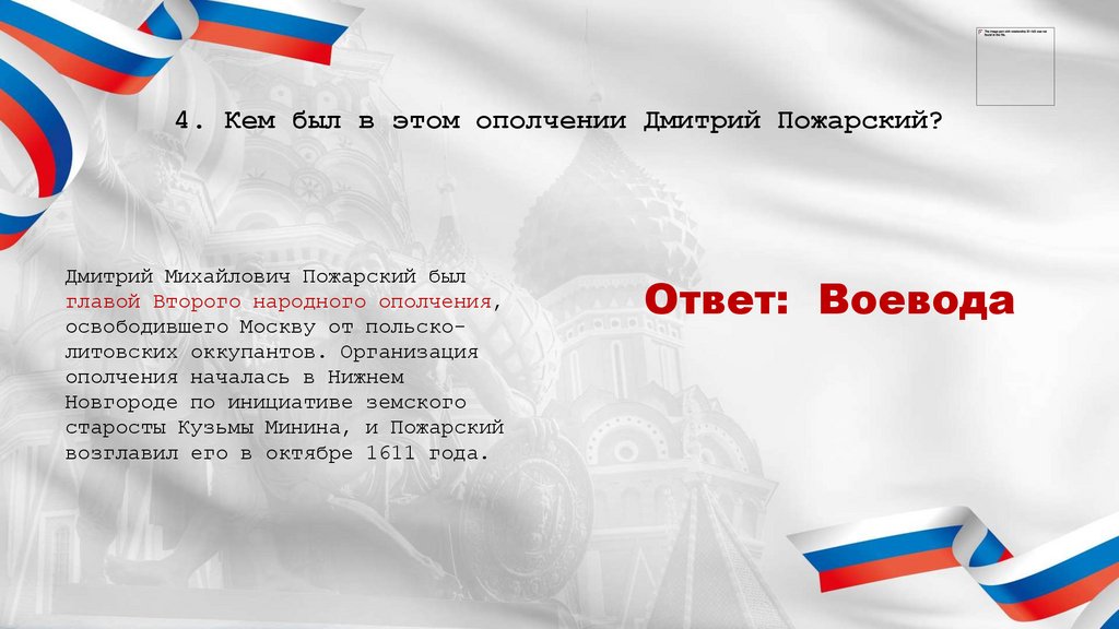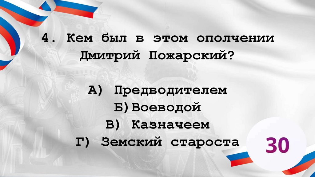 4. Кем был в этом ополчении Дмитрий Пожарский?