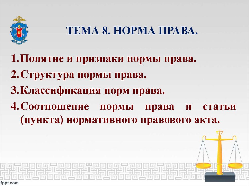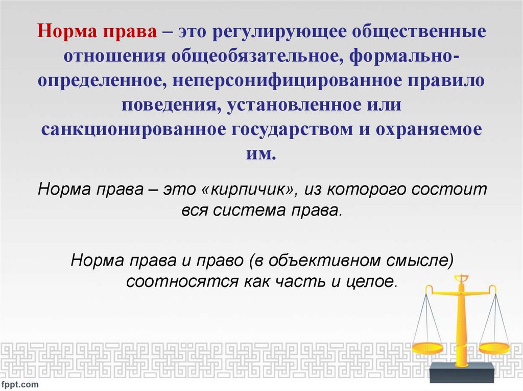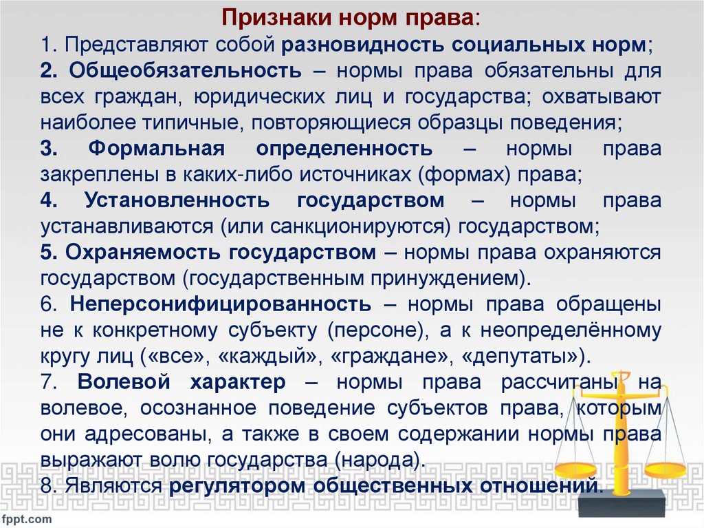 ПОНЯТИЕ И ПРИЗНАКИНОРМЫ ПРАВА