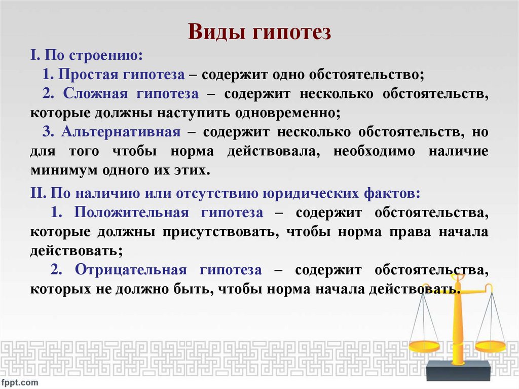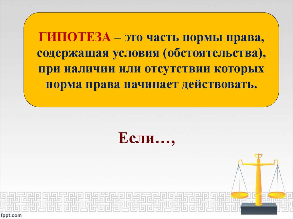 ГИПОТЕЗА – это часть нормы права,содержащая условия (обстоятельства),
