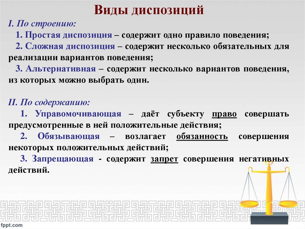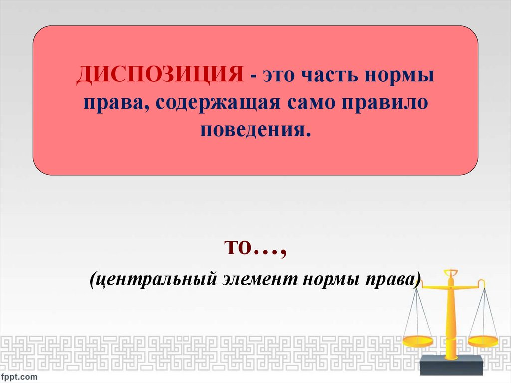 ДИСПОЗИЦИЯ - это часть нормыправа, содержащая само правило