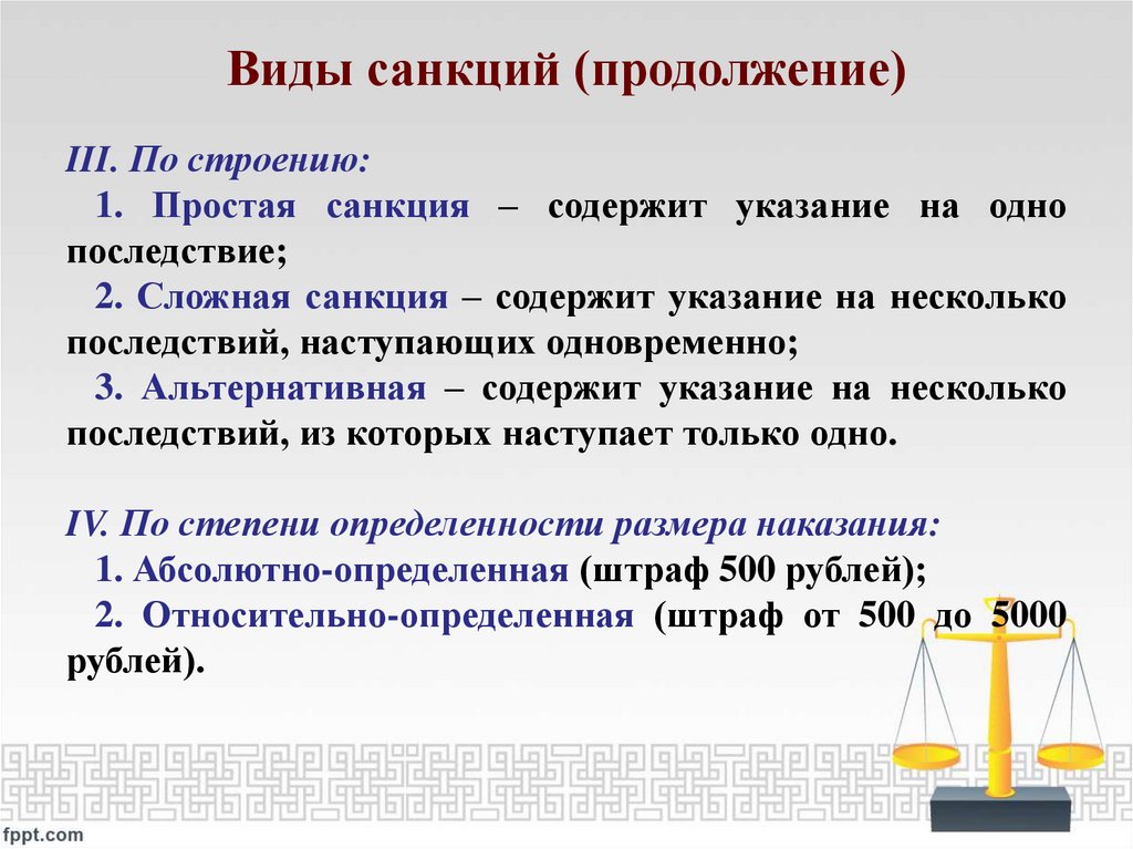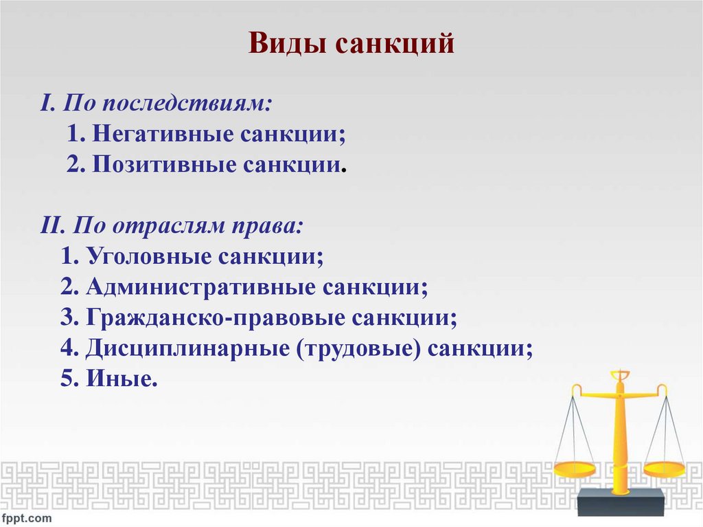 САНКЦИЯ - это часть нормы права,содержащая последствия, которые