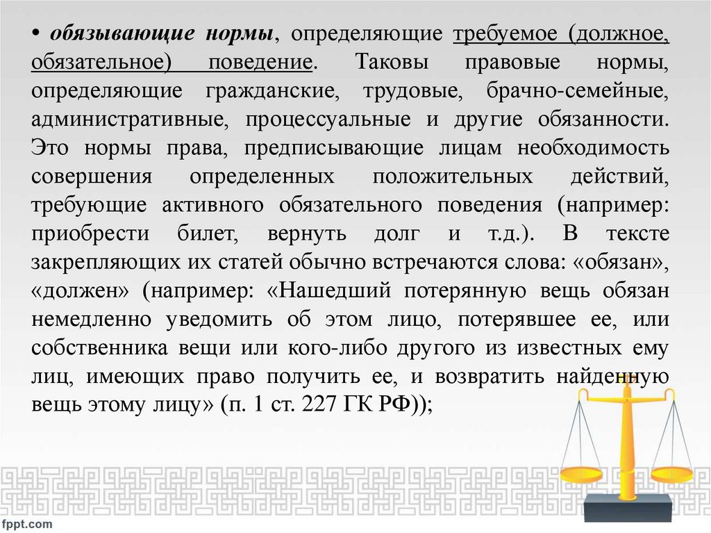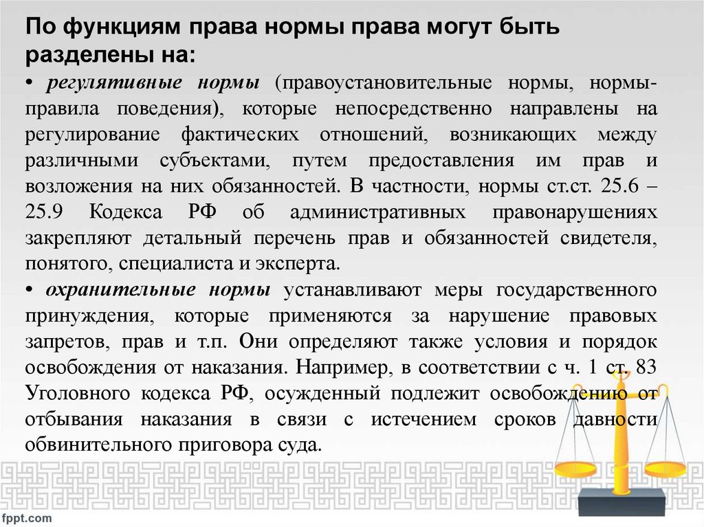 • регулятивные нормы (правоустановительные нормы, нормыправила поведения), которые непосредственно направлены на