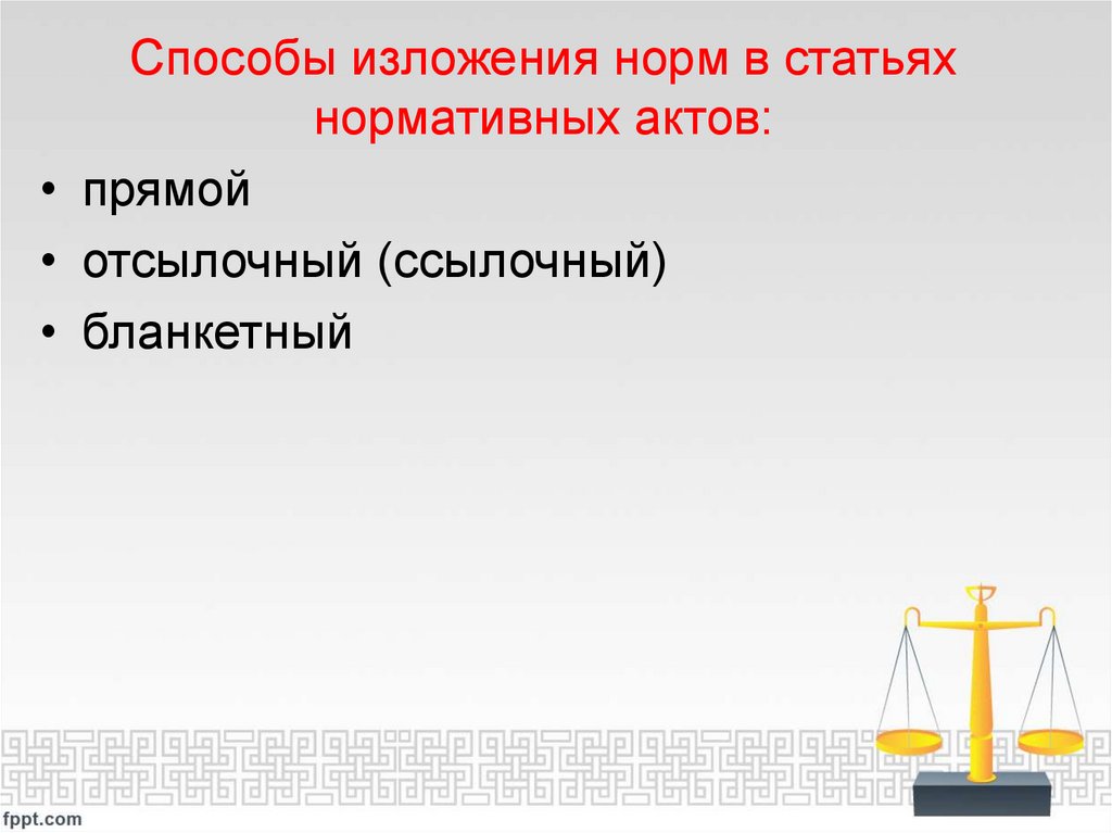 Этому варианту соответствует прямой способ изложения норм права в статьях