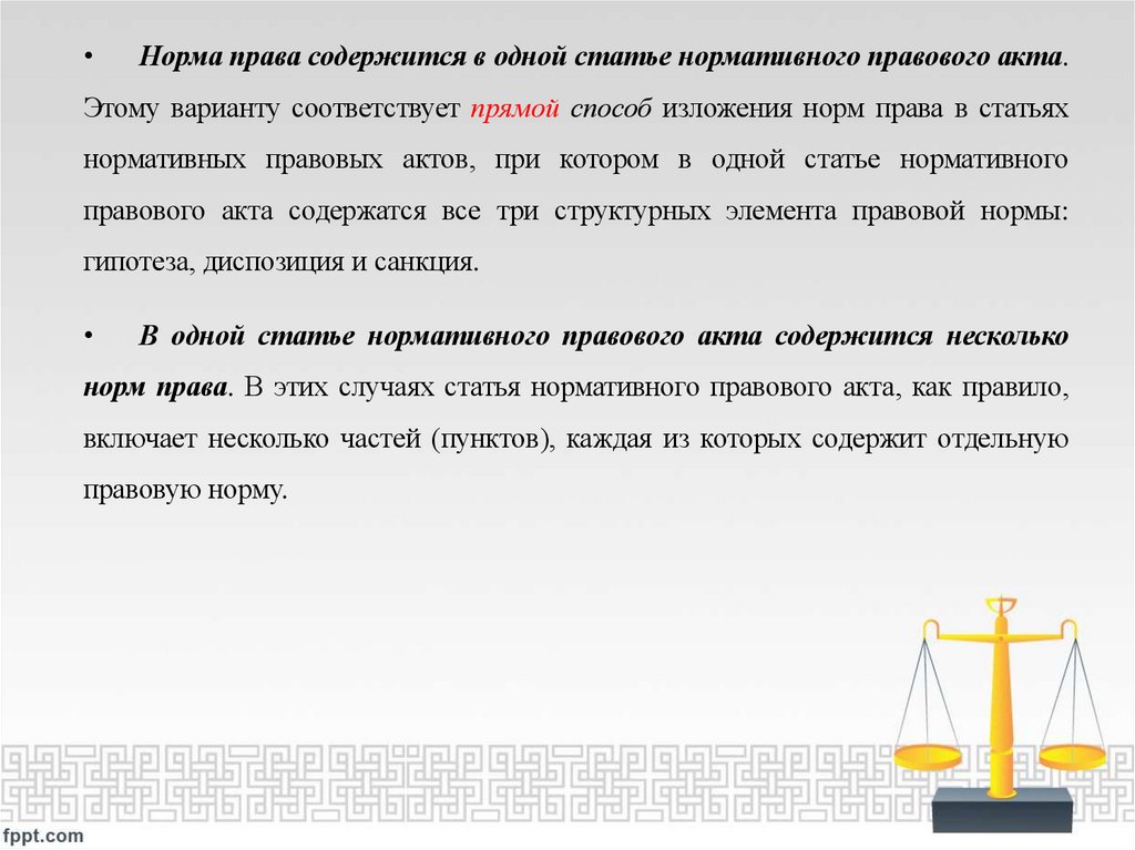 норм права. В этих случаях статья нормативного правового акта, как правило,
