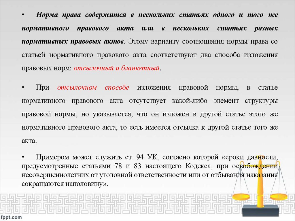 правовой нормы, но указывается, что он изложен в другой статье уже не этого, а