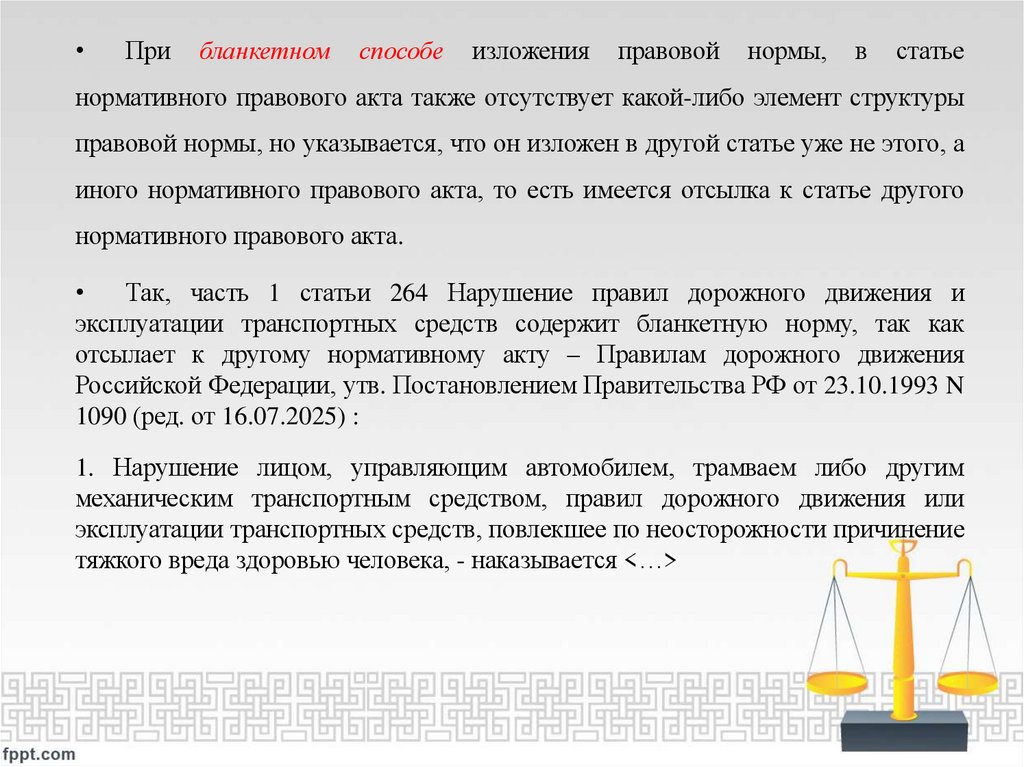 отсылает к другому нормативному акту – Правилам дорожного движения