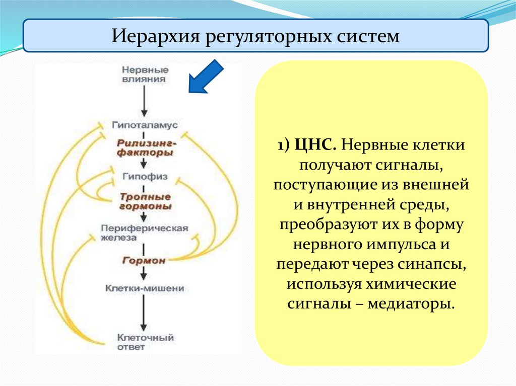 Иерархия регуляторных систем1) ЦНС. Нервные клетки