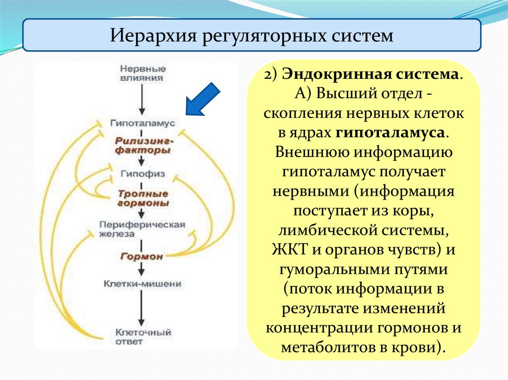 Иерархия регуляторных систем2) Эндокринная система.