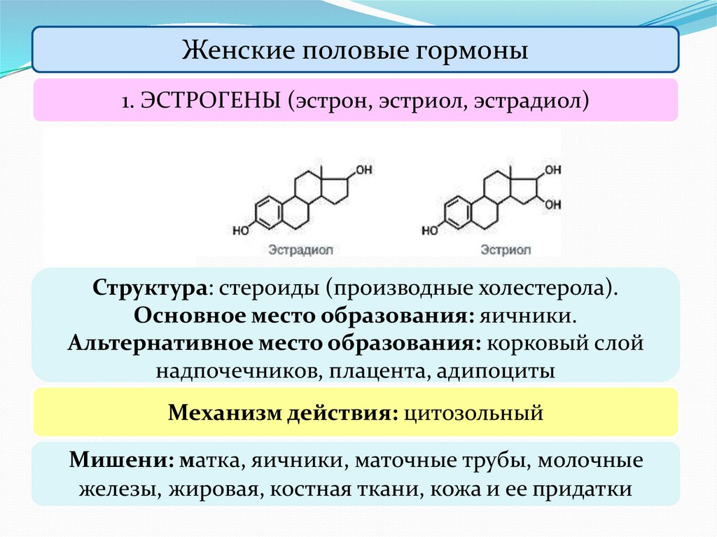 Женские половые гормоны1. ЭСТРОГЕНЫ (эстрон, эстриол, эстрадиол)