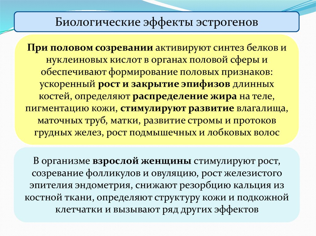 Биологические эффекты эстрогеновПри половом созревании активируют синтез белков и