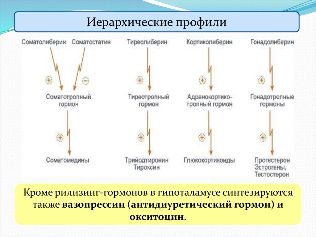 Иерархические профилиКроме рилизинг-гормонов в гипоталамусе синтезируются