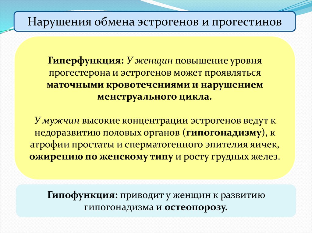 Нарушения обмена эстрогенов и прогестиновГиперфункция: У женщин повышение уровня