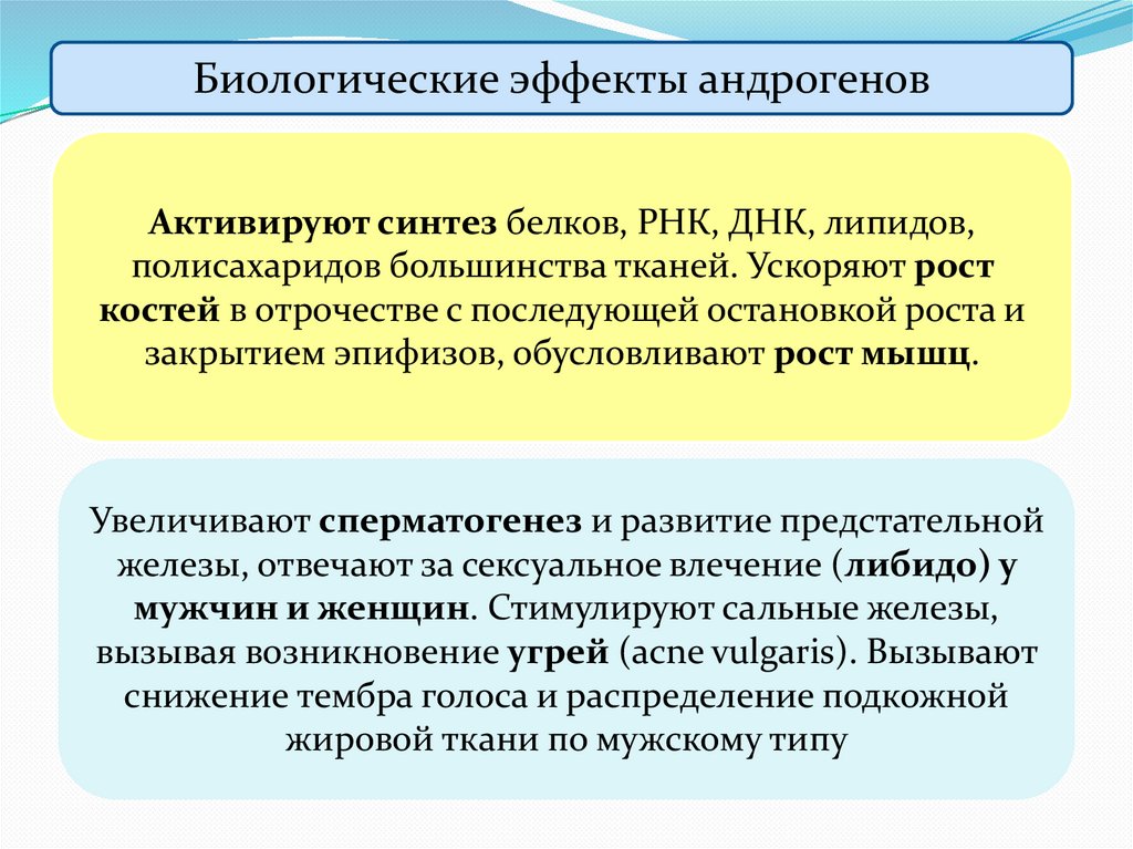 Биологические эффекты андрогеновАктивируют синтез белков, РНК, ДНК, липидов,
