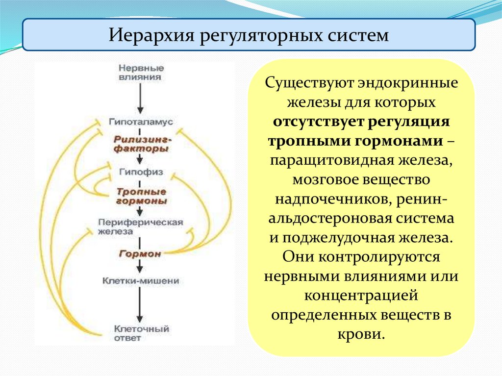 Иерархия регуляторных системСуществуют эндокринные