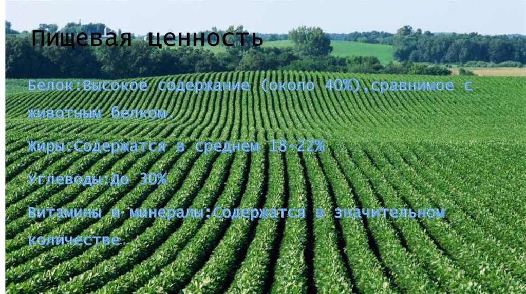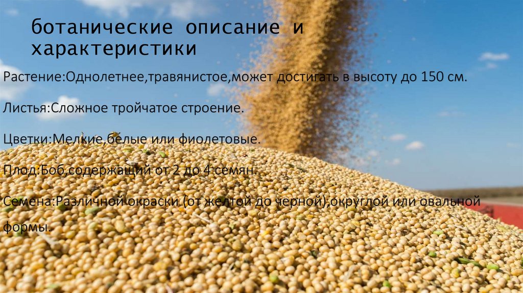 возделывается во всем мире.Ее семена,называемые соевыми бобами,являются ценным