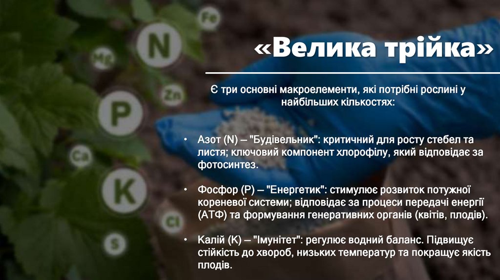 «Велика трійка»Є три основні макроелементи, які потрібні рослині у