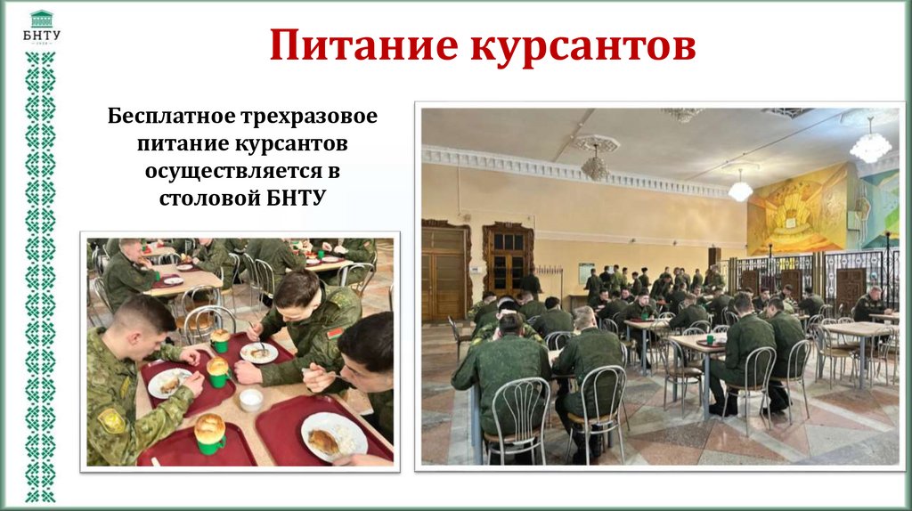 Питание курсантовБесплатное трехразовое