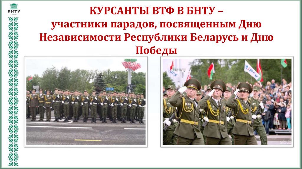 КУРСАНТЫ ВТФ В БНТУ –участники парадов, посвященным Дню